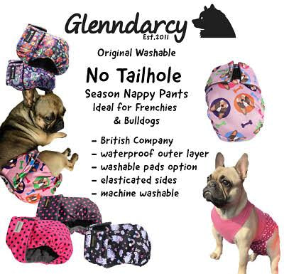 How they work? Glenndarcy waterproof fabric Flexi-Pants help keep mess off your furniture and carpets during your dog's season and can also be used for girls who have developed urine incontinence. They are unique - we designed to be adjustable in two areas - waistband and elasticated body sides for a more tailored fit.  If you are unsure of your dog's measurements, these are the best product to purchase due to their increased adjustability.